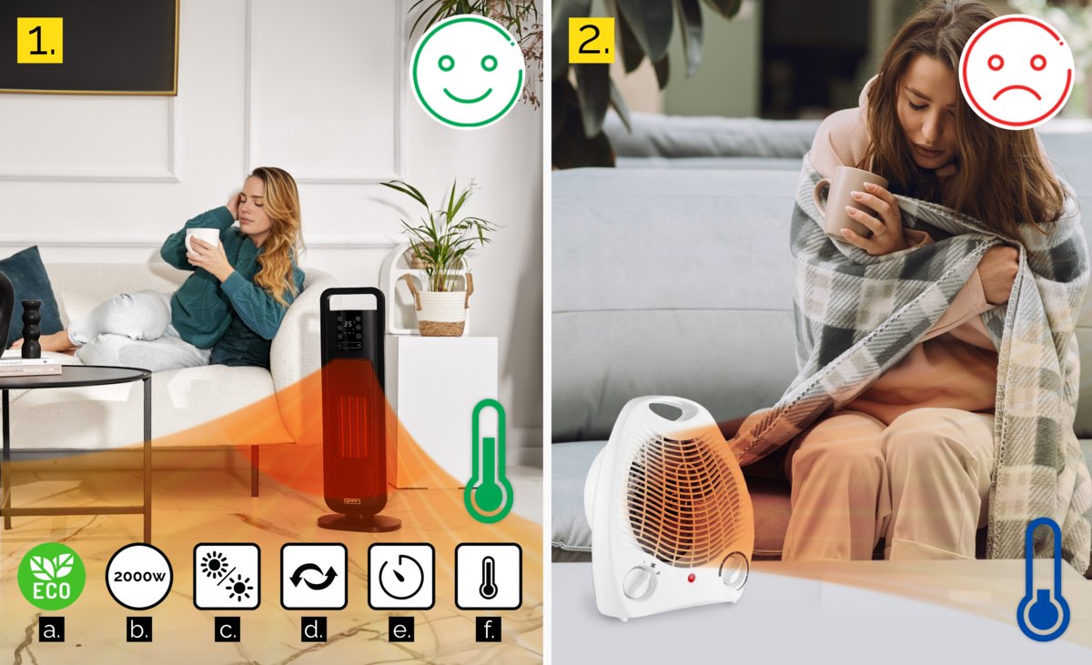1️⃣ Energooszczędny termowentylator Feno z grzałką ceramiczną: