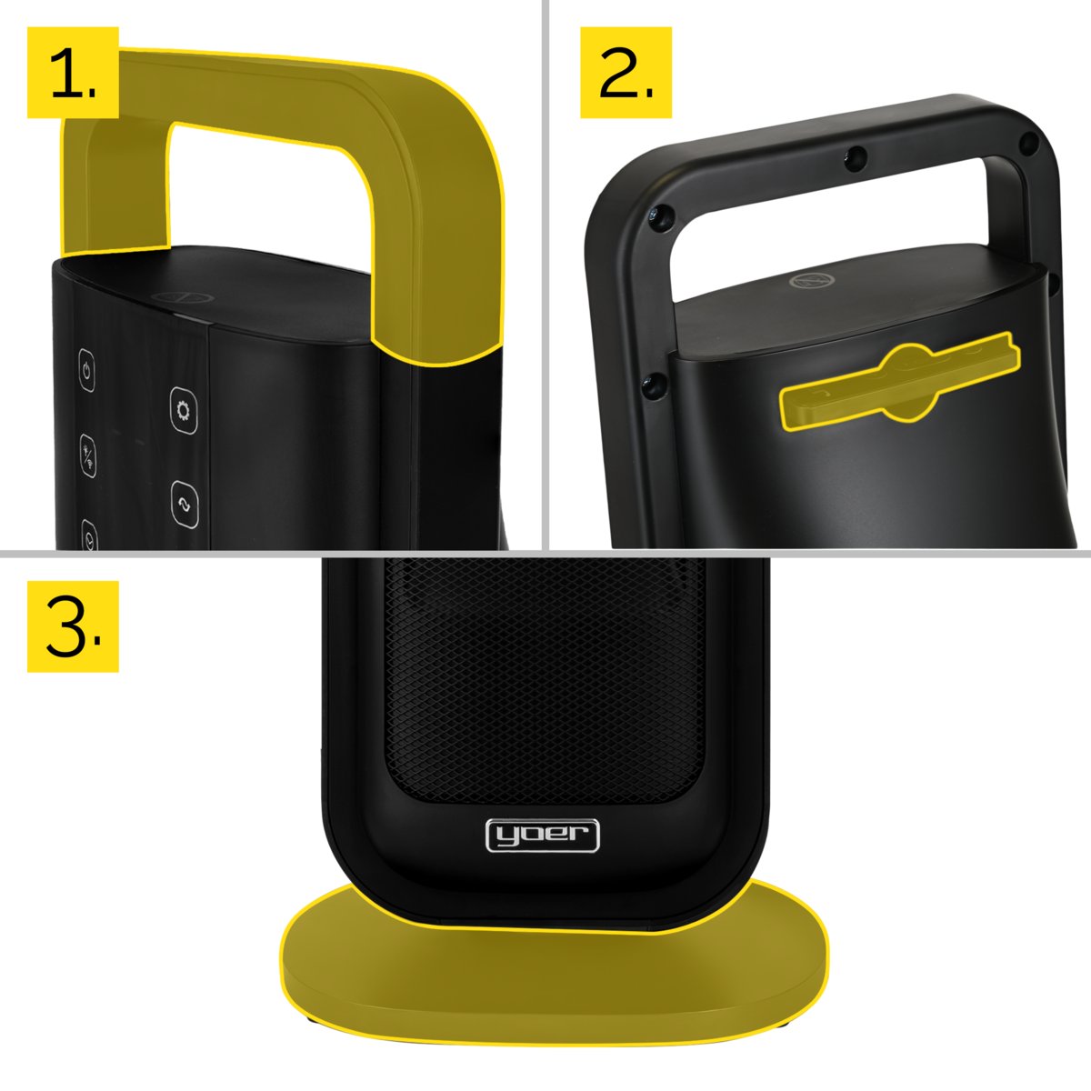 1️⃣ Uchwyt do przenoszenia - wygodnie przenoś termowentylator