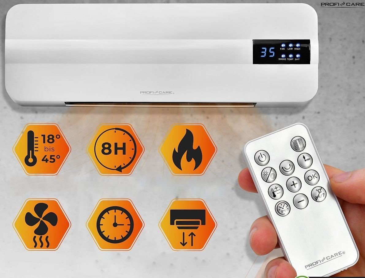 Termowentylator naścienny, grzejnik elektryczny ProfiCare PC-HL 3116 ProfiCare PC-HL 3116 to innowacyjny grzejnik, który podnosi komfort cieplny Twojego domu na zupełnie nowy poziom. Urządzenie ...