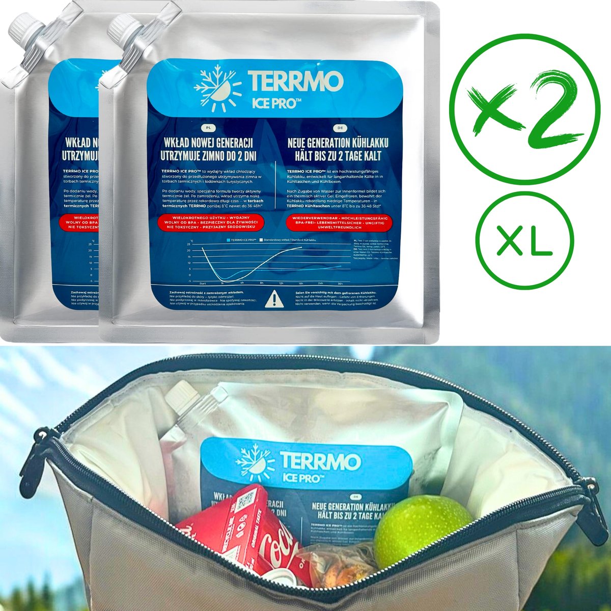 ❗✅ DODATKOWO WKŁADY TERRMO Ice Pro™ XL - 2 sztuki : Przekonasz się, jak wydajny jest nasz plecak, gdy użyjesz go z równie wydajnym źródłem chłodu! Dlatego z każdym plecakiem TERRMO EPIC otrzymujesz zestaw dwóch wkładów TERRMO Ice Pro™ XL o wartości 59,99 zł.