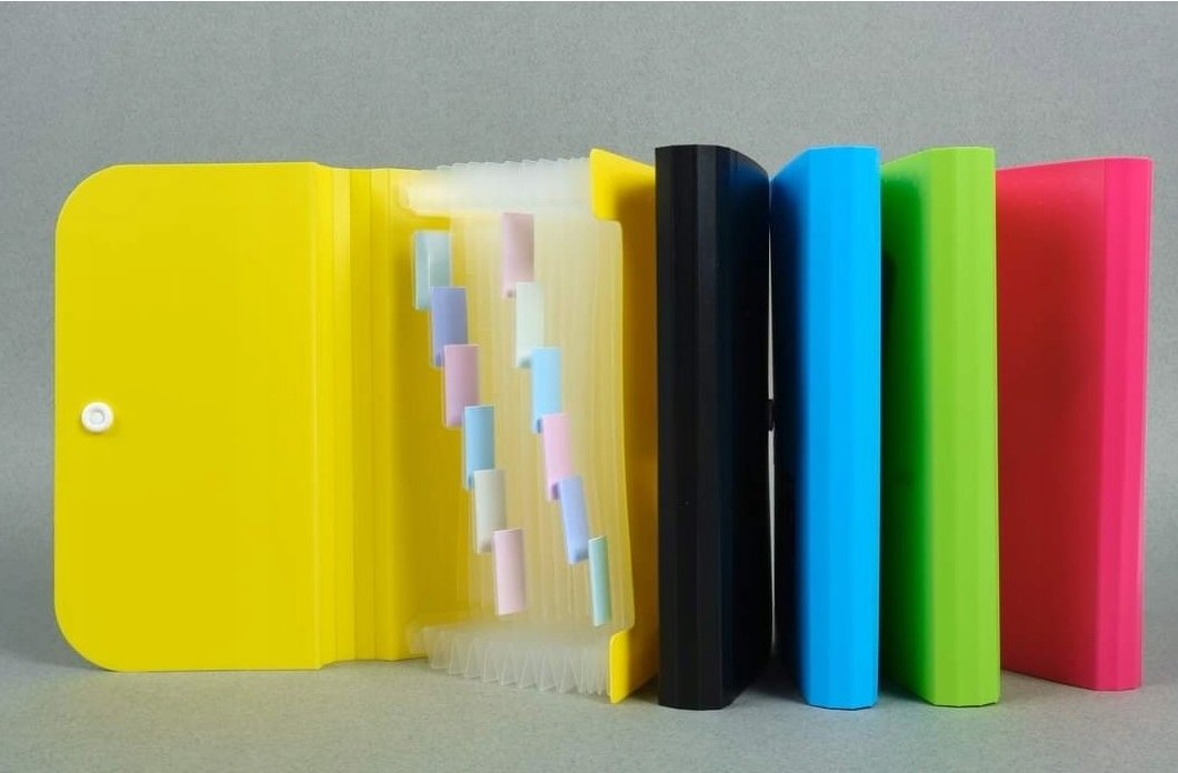 Mini organizer harmonijkowy na zatrzask o grubości tworzywa 0,60 mm.