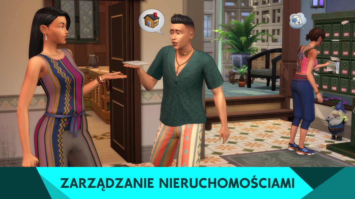 Simowie mogą teraz posiadać wiele posiadłości i nimi zarządzać lub wprowadzić się do domu, gdzie znajdą się bliżej innych niż kiedykolwiek (marzenie wścibskich Simów!). W tym tętniącym życiem świecie czekają na Ciebie imprezy składkowe i eksmisje, a także wiele innych niespodzianek.