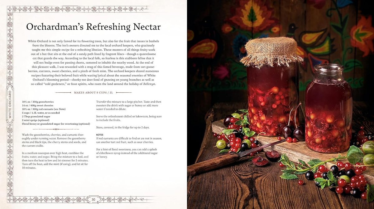 These dishes celebrate local and seasonal ingredients while adding unique twists that form a culinary map of the Continent and beyond. Warm up over a bowl of fragrant stew or juicy baked fruit from the namesake trees of White Orchard; end a hard journey to Velen with a hearty, rustic meal at the local tavern; enjoy an aromatic snack as you stroll the markets of Oxenfurt; sample dishes from near and far in the diverse port city of Novigrad; dine on freshly-caught fish and mulled drinks on the islands of Skellige; feast on rich dishes in the sun-drenched climates of Toussaint and Beauclair; or forage on the perilous road to Kaer Morhen to learn the edible secrets of the witcher’s keep. Transport your kitchen to another world with the tempting scents and flavors in The Witcher Official Cookbook.