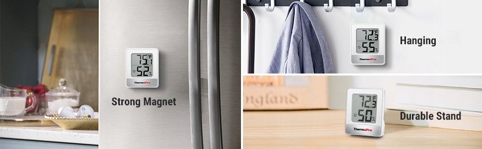 Łatwy do odczytania: Duże przezroczyste cyfry termometru biurowego są łatwe do odczytania z wyświetlacza LCD; Co więcej, ma podstawkę, uchwyt magnetyczny i otwór montażowy z tyłu, dzięki czemu można go umieścić praktycznie wszędzie; Temperatura może być wyświetlana w Fahrenheita lub Celsjusza; Co za pomocny monitor do kontroli temperatury lub wilgotności wewnątrz