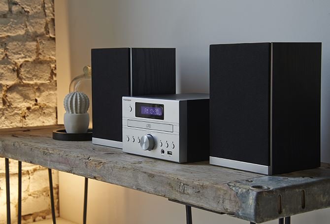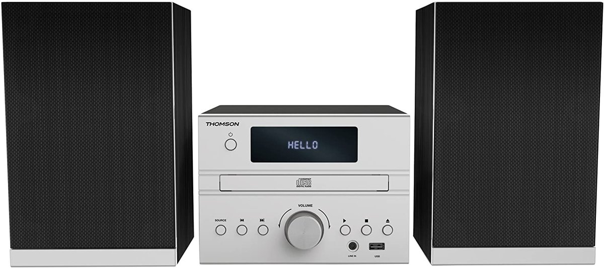 Mikro wieża THOMSON MIC122BT z bezprzewodową komunikacją Bluetooth, wyposażony również w radio FM z automatycznym strojeniem stacji (pamięć 30 stacji) i funkcję RDS do wyświetlania nazwy stacji radiowej lub nazwy i wykonawcy aktualnie odtwarzanego utworu. Odtwarzacz CD obsługuje ormat MP3, możesz także odtwarzać swoje ulubione utwory z pamięci USB lub podłączyć inne urządzenie zewnętrzne, takie jak smartfon lub odtwarzacz MP3, za pomocą dołączonego kabla jack 3,5 mm do gniazda AUX IN. Możesz również połączyć się bezprzewodowo za pomocą Bluetooth®.