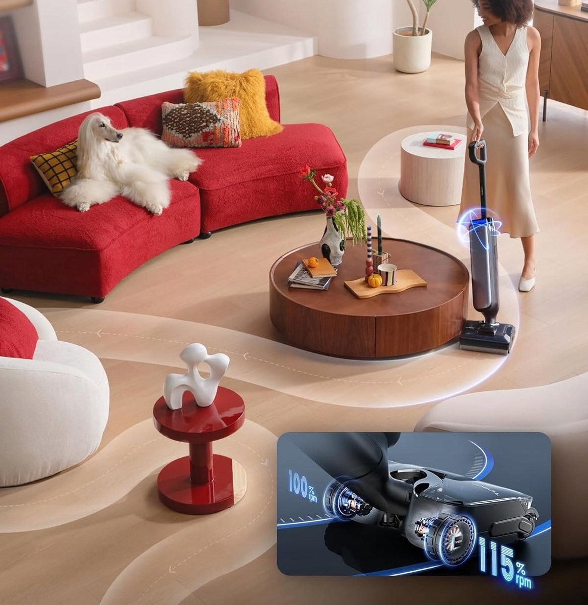 Bezkonkurencyjna siła ssania 22 kPa i 50-minutowy czas pracy: Ciesz się dogłębnym czyszczeniem dzięki wiodącej w branży mocy ssania i dłuższemu czasowi pracy, co pozwala na łatwe i nieprzerwane sprzątanie — idealne do dużych mieszkań i gospodarstw domowych ze zwierzętami.