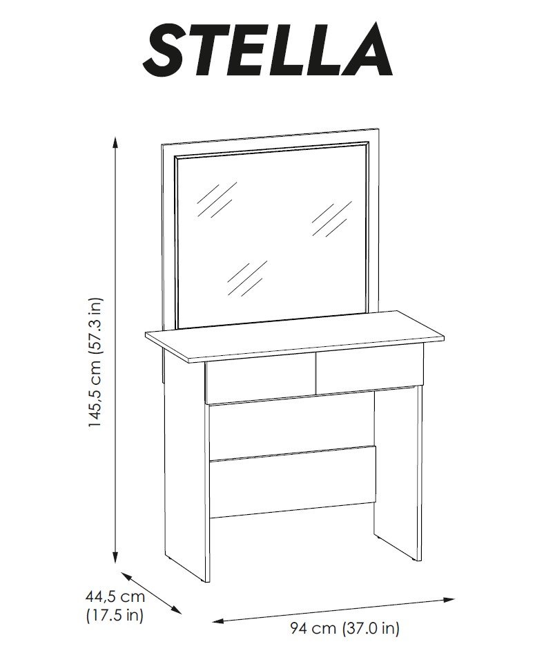 Dzięki użyciu najlepszych materiałów TOALETKA STELLA odporna jest na wszelkiego rodzaju zadrapania i uszkodzenia mechaniczne oraz posiada nieścieralną powierzchnię.