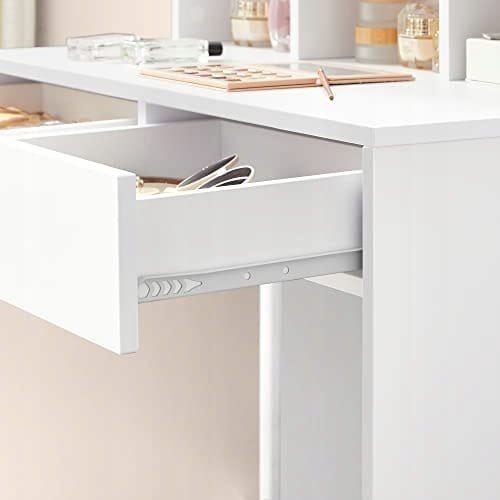Toaletka ze światłem LED i lustrem do makijażu wizażu Kosmetyczna Półki Wykończenie białe