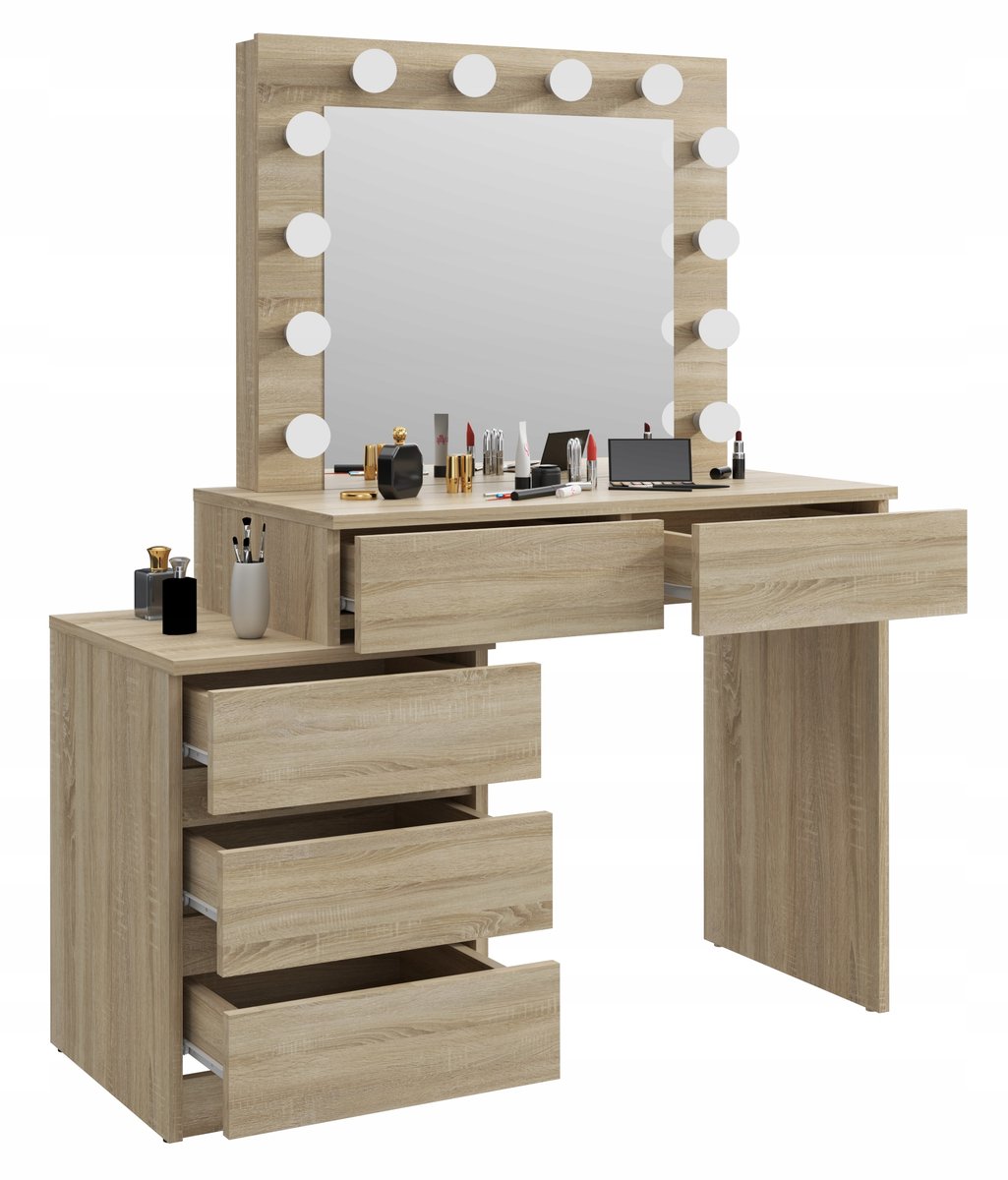 | Nazwa: | Toaletka kosmetyczna z lustrem i żarówkami Adele 12 Led dąb sonoma |