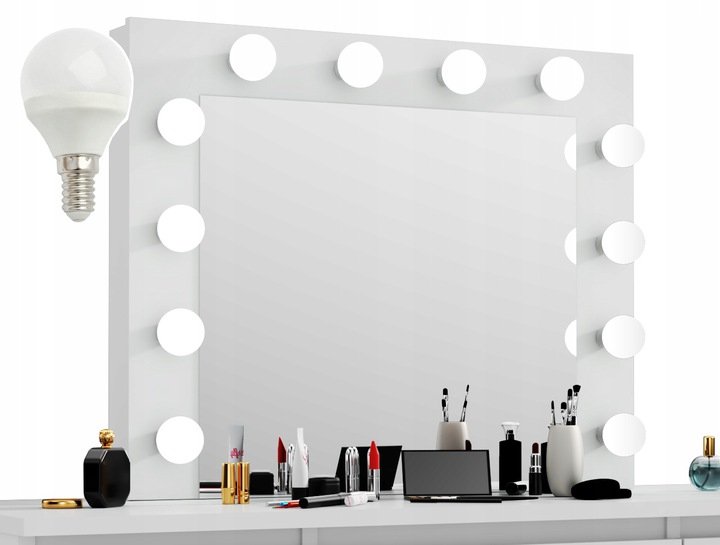 ✅Wokół lustra znajduje się aż 12 żarówek LED (kulek) w najlepszej do robienia profesjonalnego makijażu barwie - białej neutralnej, zapewniającej idealne doświetlenie skóry.