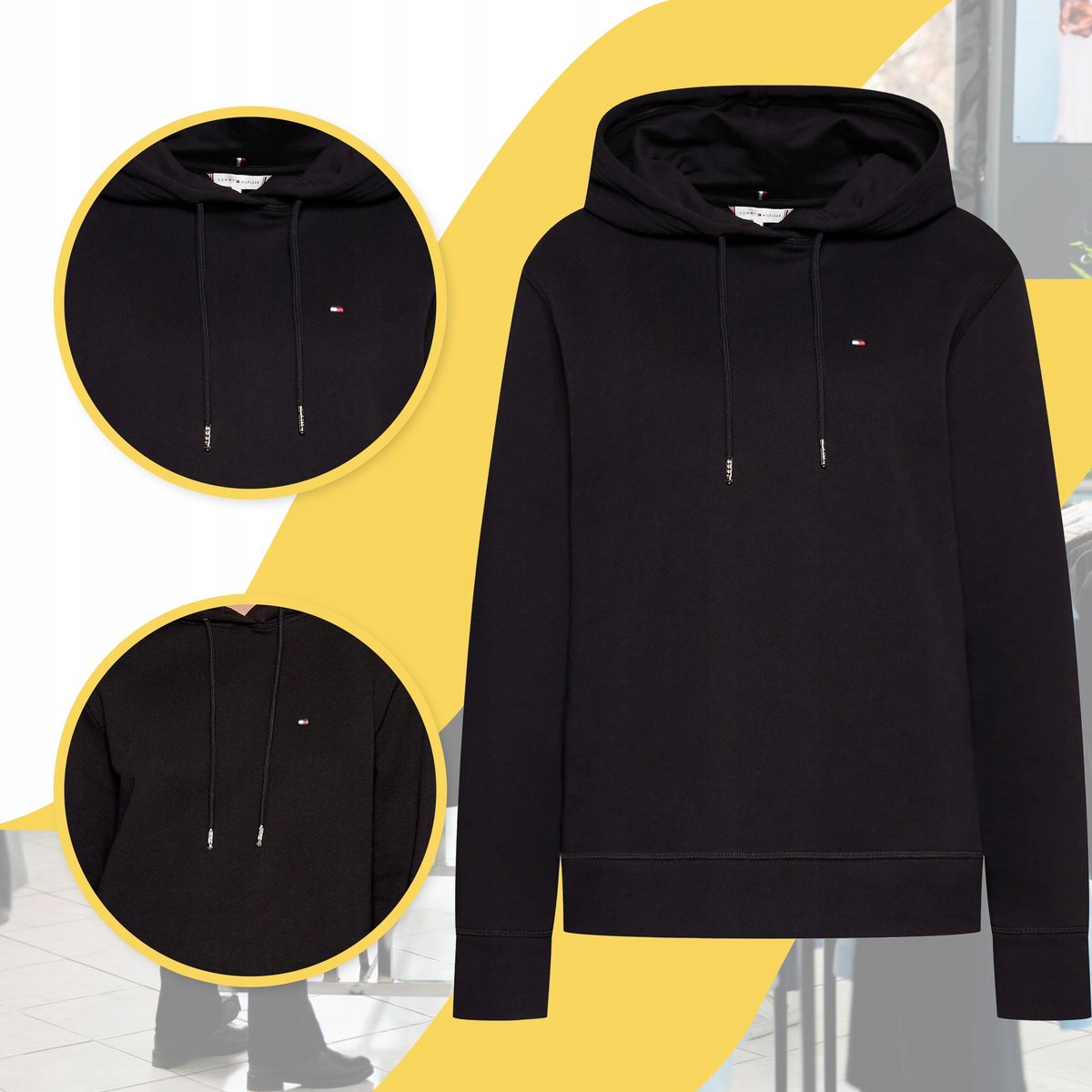 | Nazwa: | Tommy Hilfiger Czarna Bluza z kapturem Damska Bawełniana Logo Ciepła r.L |
