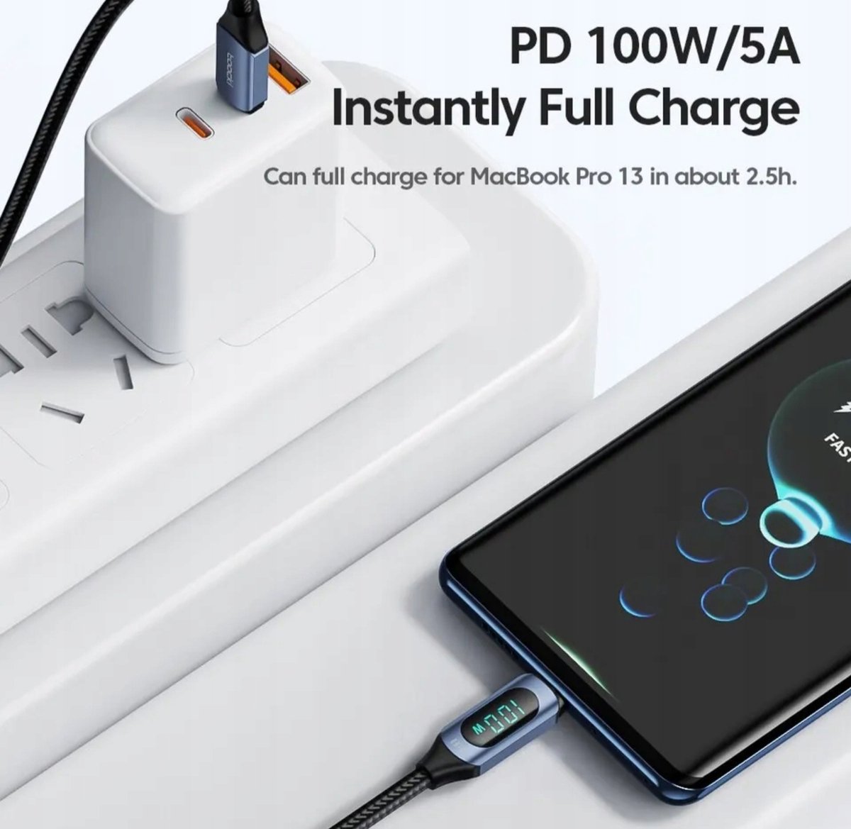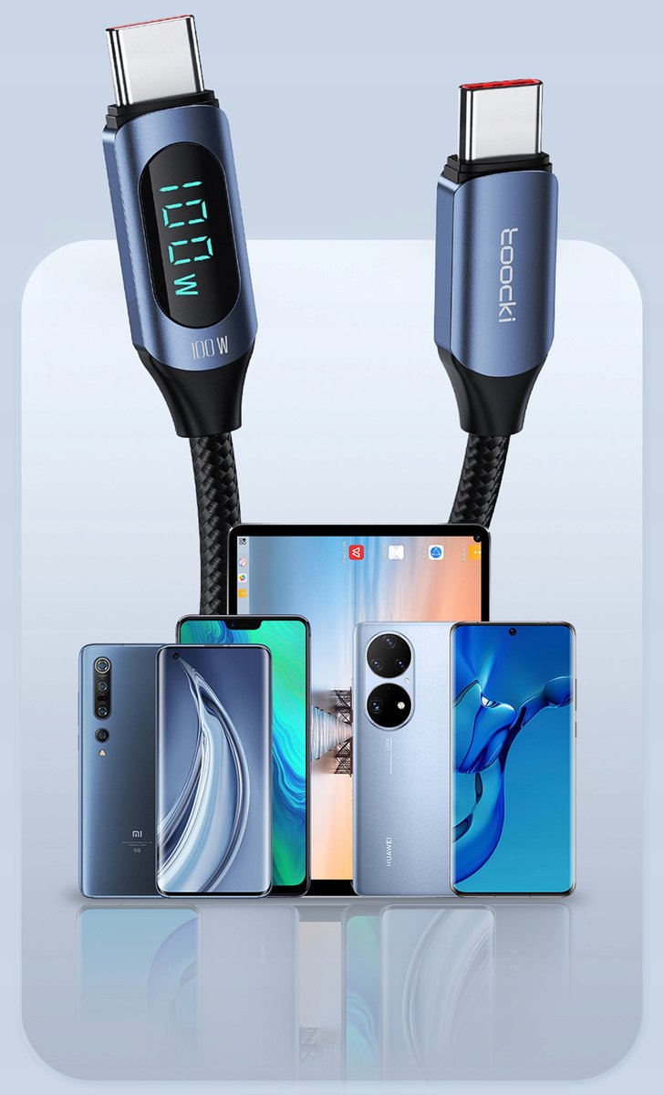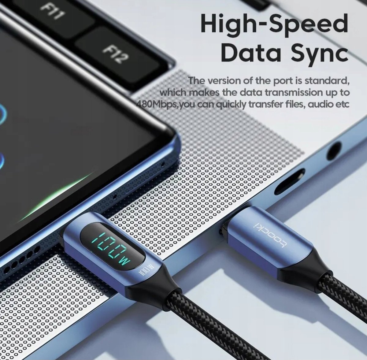 TOOCKI kabel USB-C Type-C 100W PD QC 2 metry + MIERNIK LCD