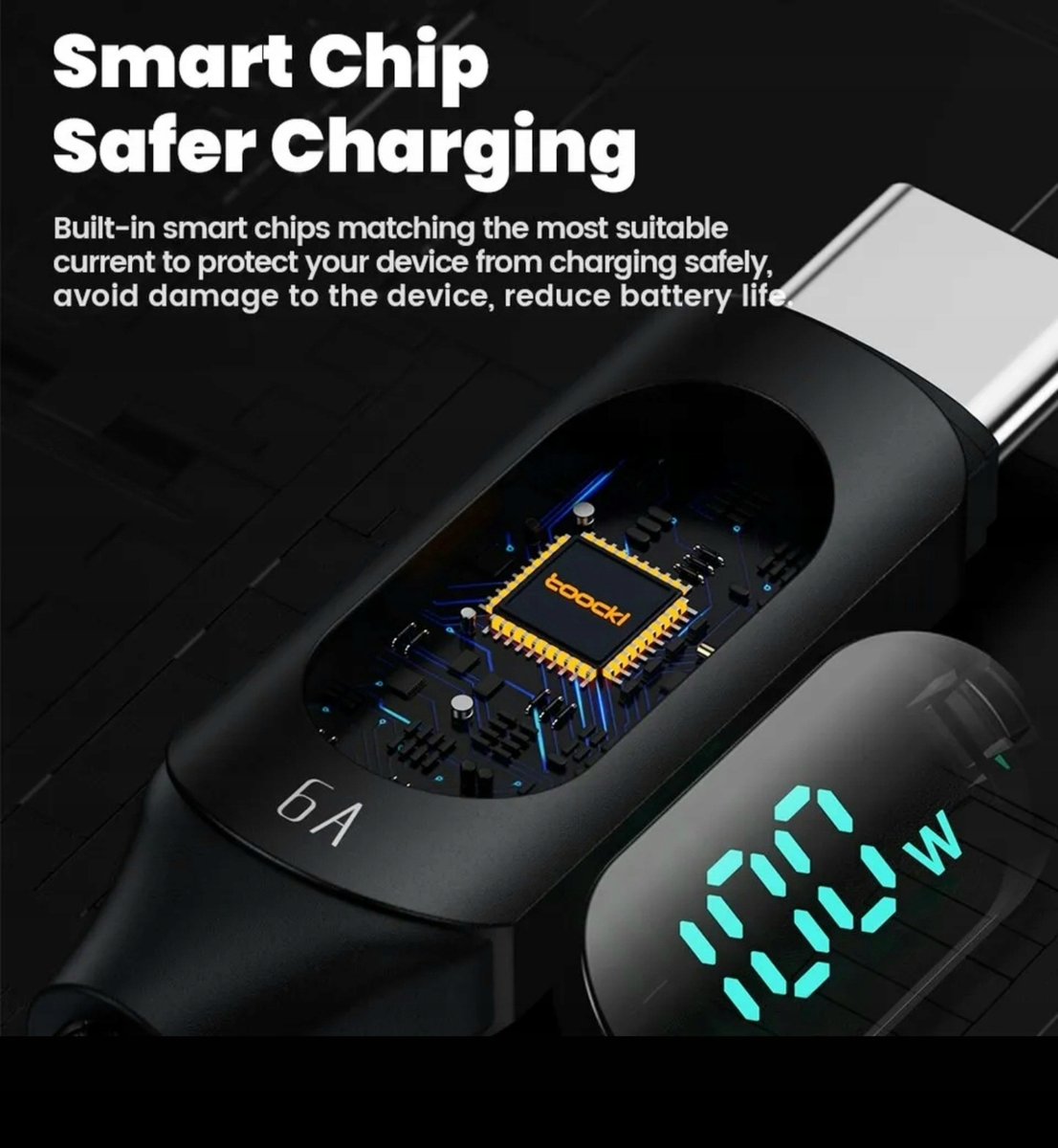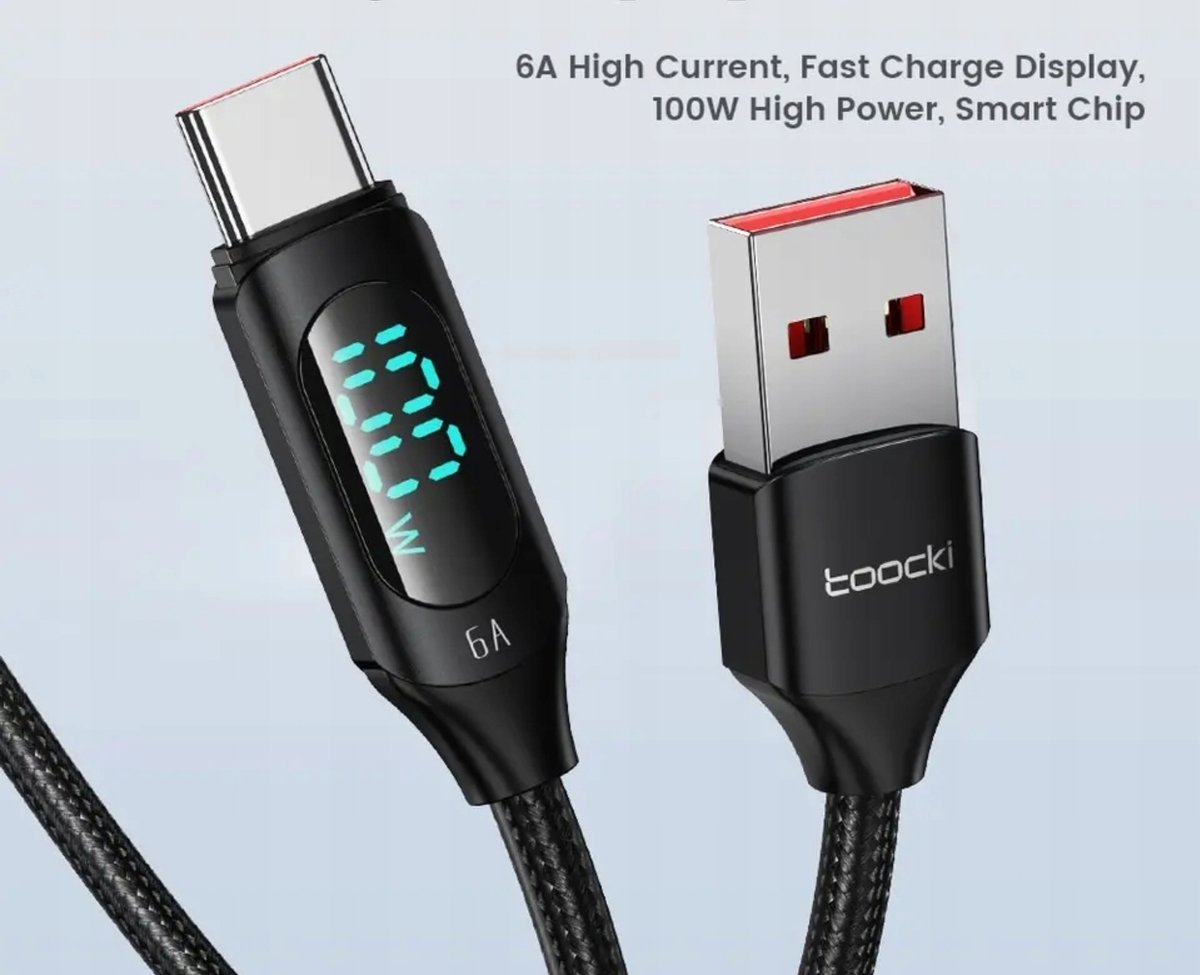 | Nazwa: | TOOCKI kabel 2m USB A-USB C 100W 6A PD QC 2 metry+ MIERNIK LCD |