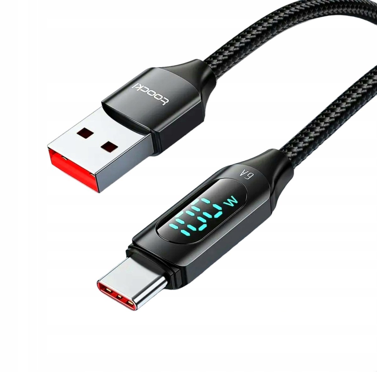 TOOCKI czarny kabel USB-A do USB-C 100W PD QC + MIERNIK LCD