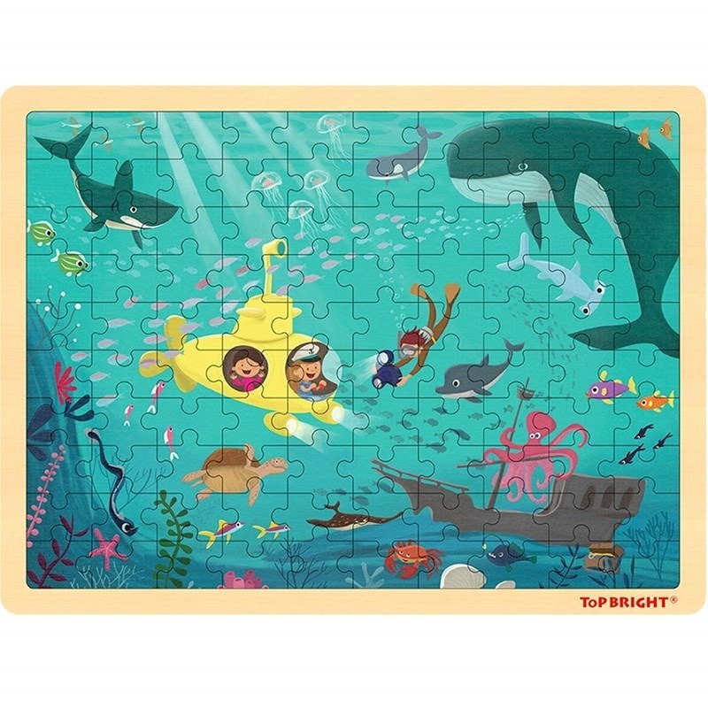 Drewniane puzzle z motywem Oceanu. Wykonane z ekologicznego, wysokiej jakości drewna, bez BPA. Barwione nietoksyczną farbą na bazie wody.
