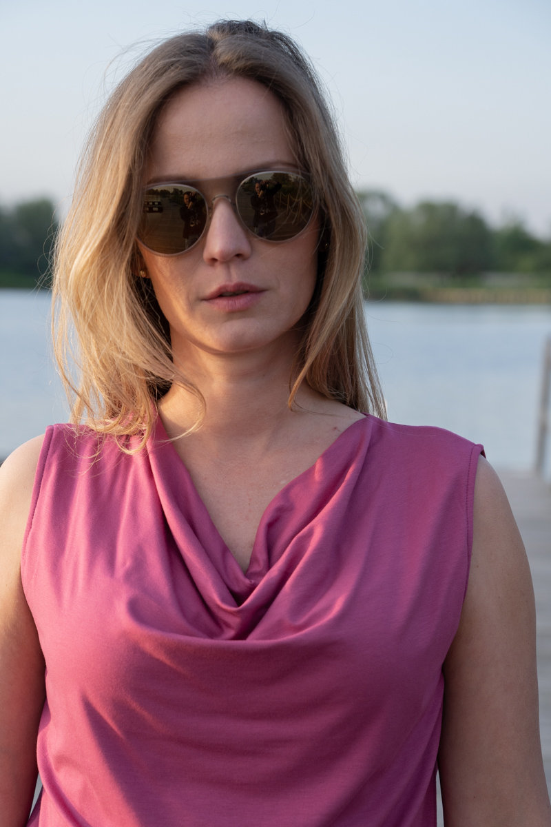 A sam Tulip? Ma wszystko, czego szukamy w damskich topach na lato – leży idealnie. Jego krój dostosowuje się do sylwetki – nie tylko podkreśla talię, ale i modeluje biust. Marszczenia w okolicach dekoltu dodają bluzce lekkości i zasłaniają to, co być może czasami nie jest naszą najmocniejszą stroną. Lejąca się wiskoza optycznie wyszczupla odsłonięte ramiona.