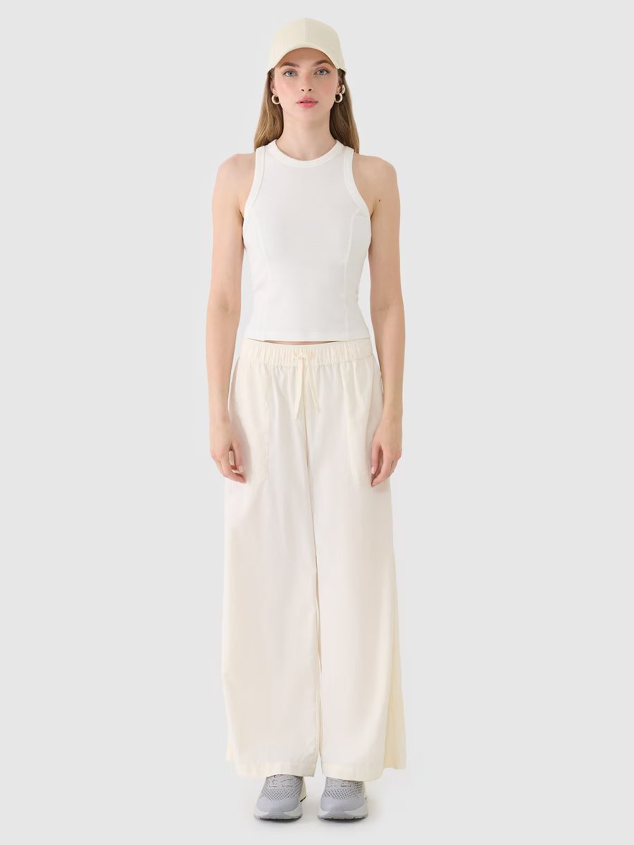 Ten klasyczny top na ramiączkach łączy wygodę z kobiecym dopasowaniem. Sprawdzi się zarówno w sportowych stylizacjach, jak i na co dzień – pod marynarkę, kardigan czy solo w cieplejsze dni.