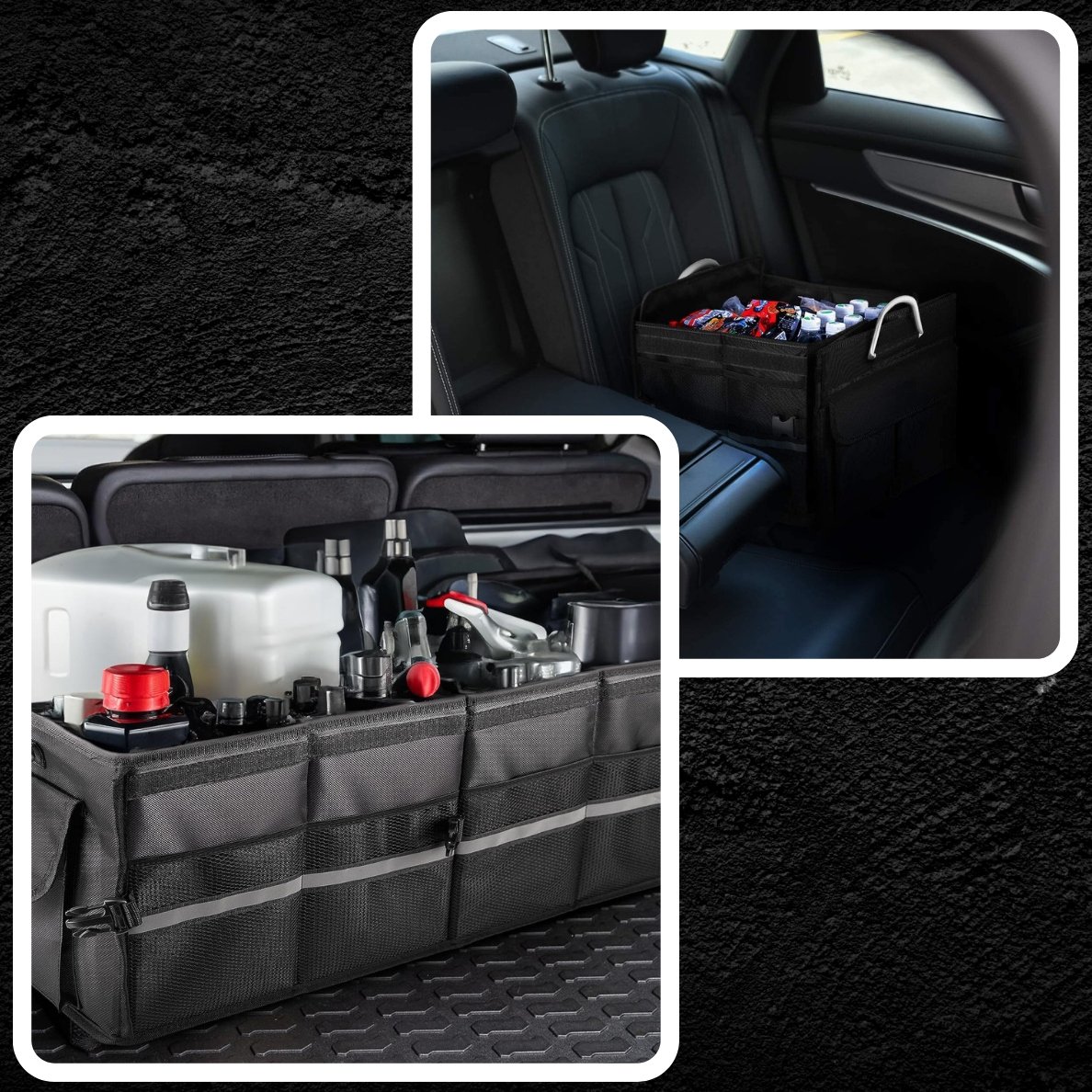 Został wykonany z wysokiej jakości, wodoodpornej tkaniny 1680D, która chroni zawartość przed wilgocią i warunkami atmosferycznymi. Uniwersalny czarny kolor doskonale komponuje się z wnętrzem każdego samochodu.