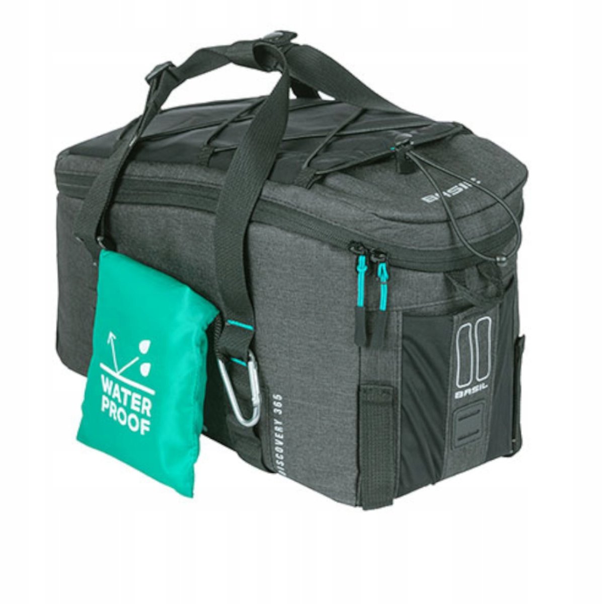 Basil Discovery 365D Trunkbag to torba, która szybko stanie się nieodzownym elementem każdej rowerowej przejażdżki. Montowana jest na bagażniku za pomocą wstępnie zamocowanego już adaptera MIK (do kupienia osobno) lub pasków na rzep. To proste i wygodne rozwiązanie, dzięki któremu bezpiecznie przewieziesz wszystkie najpotrzebniejsze rzeczy. Wykonana z wytrzymałego poliestru jest bardzo praktyczna dzięki klapie z elastyczną kieszenią, dodatkowej elastycznej kieszeni z boku czy poręcznemu karabińczykowi. Wyposażona jest w poręczny ściągacz, a dodatkowy pokrowiec przeciwdeszczowy ochroni Twoje rzeczy przed zamoczeniem nawet w najgorszą pogodę. Torba posiada także odpinany pasek na ramię i elementy odblaskowe umieszczone na zewnętrznym materiale, zwiększają widoczność rowerzysty po zmroku.