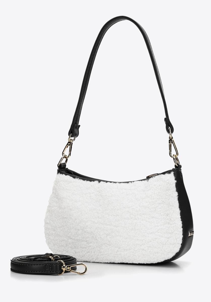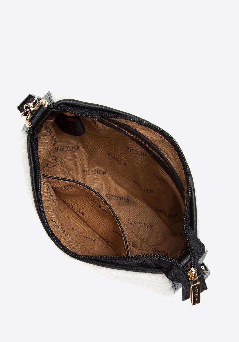 Wittchen Torebka bagietka ze sztucznym futerkiem mała kremowo-czarna - 97-4Y-502-0