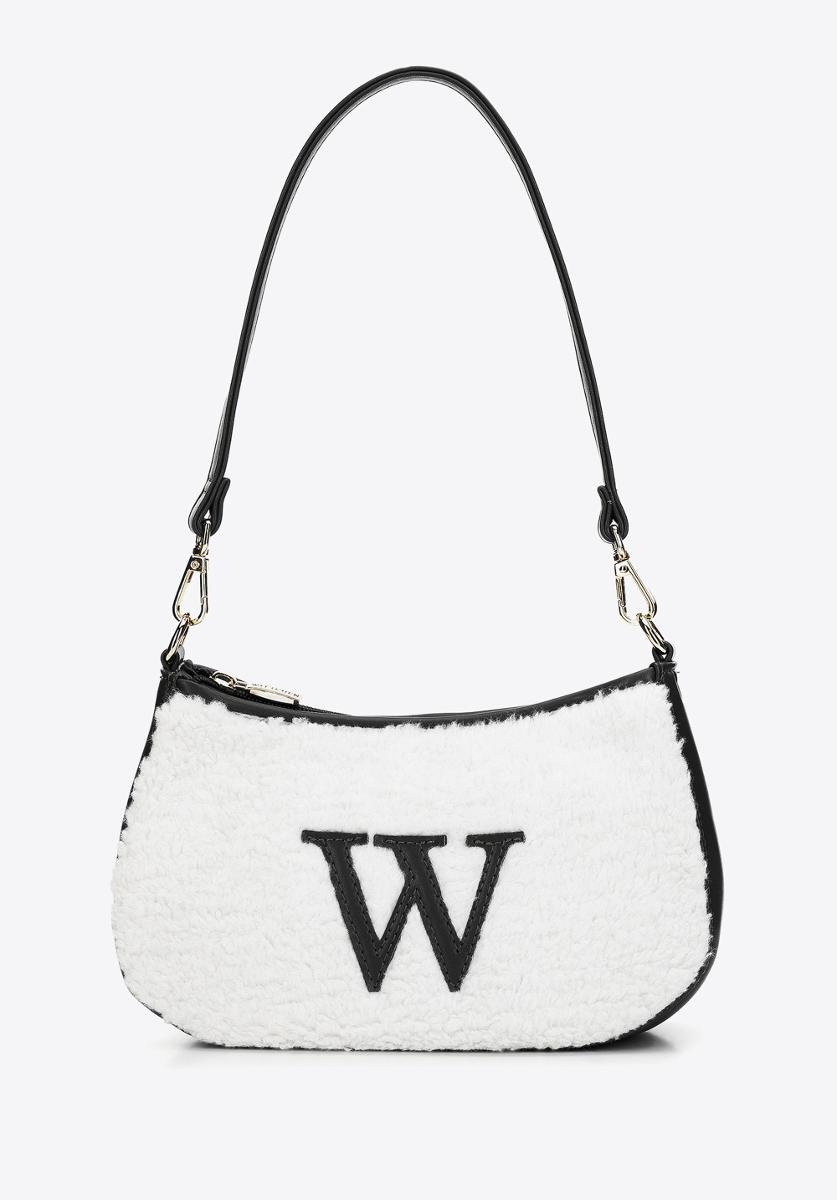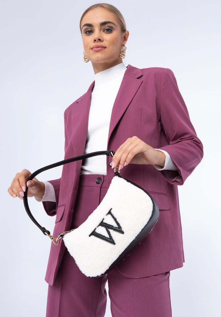 Modna torebka o fasonie bagietki to must have dla każdej stylowej kobiety. Ten model został wykonany z wysokiej jakości skóry ekologicznej. Front oraz tył torebki wykończony jest przyjemnym w dotyku sztucznym futerkiem. Dodatkowo z przodu znajduje się literka „W”. W środku zmieścisz portfel, telefon, mały kalendarz i chusteczki – w sam raz na kawę z przyjaciółką, spacer lub do kina. Dodaj charakteru gładkiej dzianinowej sukience lub noś ją do ulubionych dżinsów boyfriendów i koszulki. Mała torebka bagietka ze sztucznym futerkiem każdego dnia przyciągnie niejedno spojrzenie.Nasza rada: noś ją jak lubisz: na krótkim lub długim pasku.Wewnątrz: