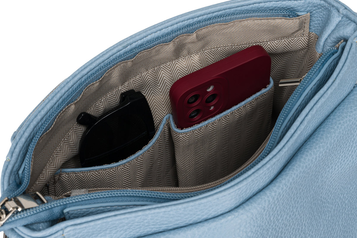 #️⃣ Z dodatkowymi kieszeniami | Lekka torebka listonoszka, pomieści najpotrzebniejsze drobiazgi jak portfel czy telefon. Wyposażona w 2 komory i aż 6 kieszeni