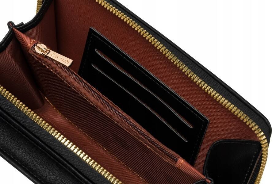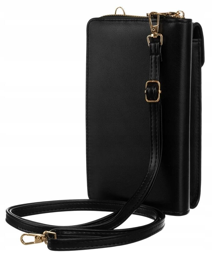 Na froncie torebko-portfela znajduje się praktyczna kieszeń na telefon o wymiarach 16,5 x 8 x 1,5 cm. Kieszeń posiada klapkę z zapięciem typu zatrzask.