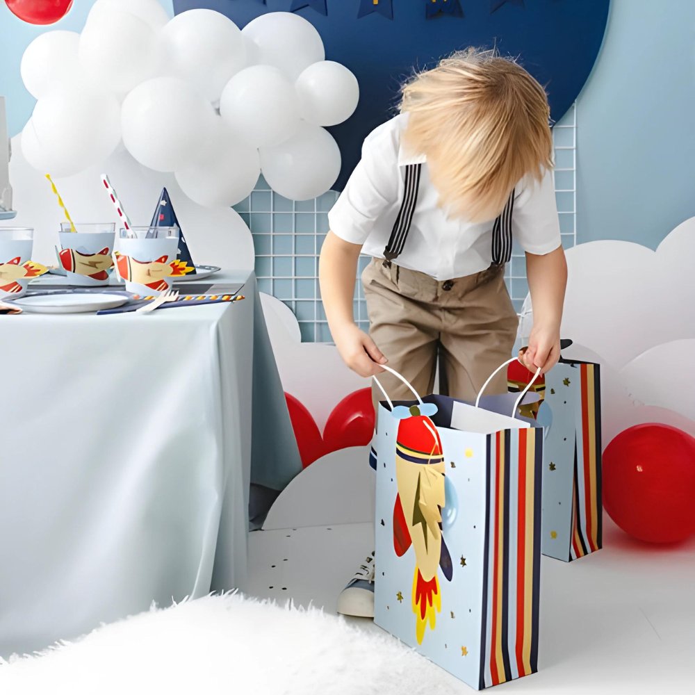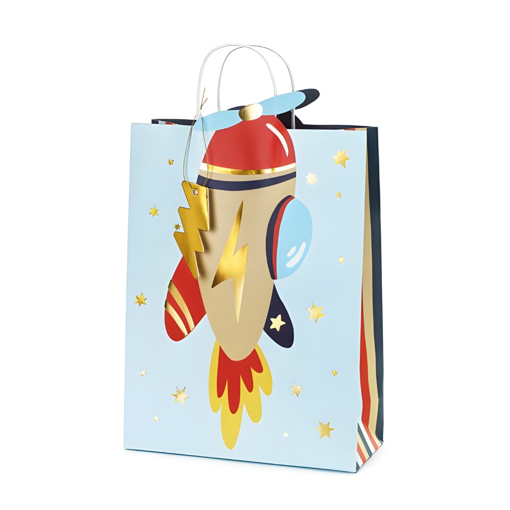 Torebka prezentowa z nadrukiem w kształcie samolotu to niezwykłe połączenie elegancji, wyrafinowanego wyglądu i dziecięcej radości. Oferuje ona niezapomniane wrażenia estetyczne i wyróżnia się szczególnym stylem, doskonale nadającym się na prezent dla miłośników podróży czy fanów lotnictwa. Wymiary torebki - 10 cm x 24 cm x 35,5 cm - sprawiają, że doskonale sprawdzi się ona jako opakowanie dla różnorodnych prezentów.