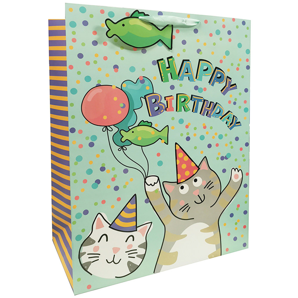 Torebka Dwa Kotki J torebka prezentowa z napisem Happy Birthday oraz nadrukiem dwóch kotków, nadruk z folią na gorąco z jednej strony, druga strona matowa, bilecik z miejscem na życzenia ...