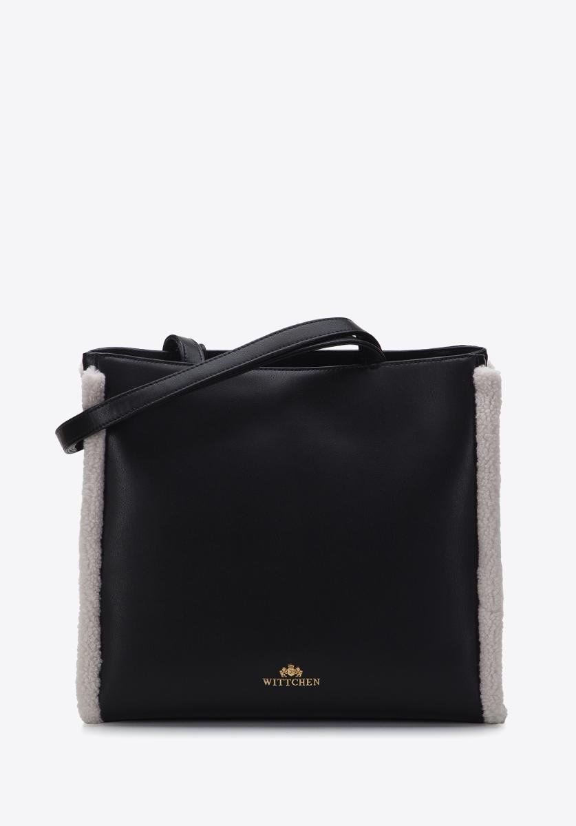 Wittchen Torebka shopperka skórzana ze sztucznym futerkiem dwukomorowa czarno-kremowa - 97-4E-605-1
