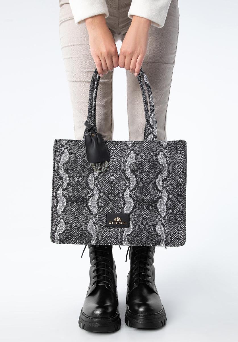 Wittchen Torebka shopperka w zwierzęcy wzór szaro-czarna - 97-4E-504-X5