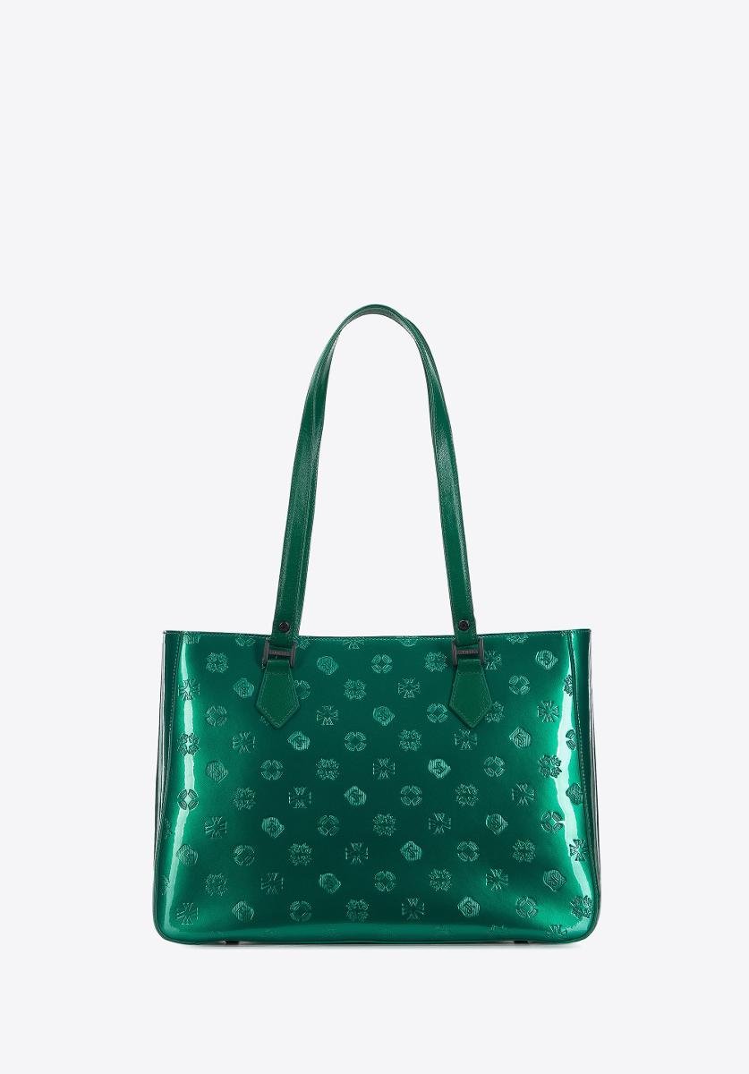 | Nazwa: | Torebka shopperka z błyszczącej skóry w monogram zielona |