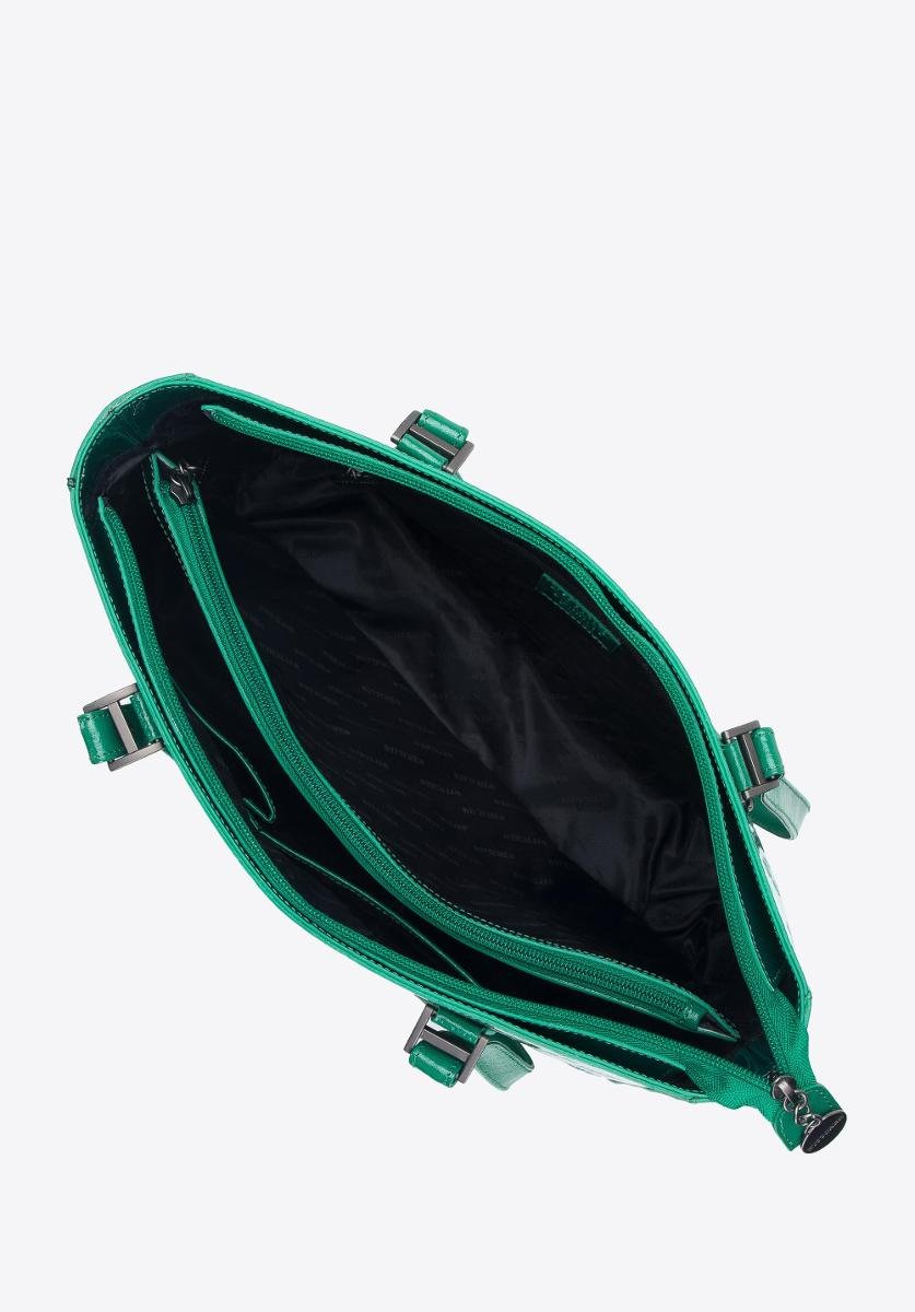 Wittchen Torebka shopperka z błyszczącej skóry w monogram zielona - 34-4-098-00