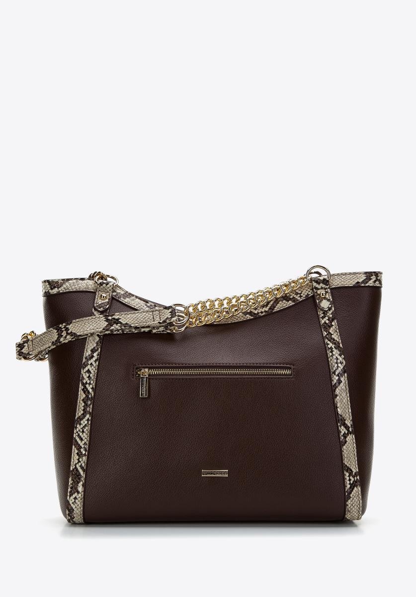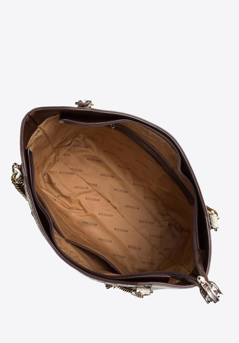 Wittchen Torebka shopperka z obszyciem z ekoskóry o fakturze lizard brązowo-beżowa - 97-4Y-508-9