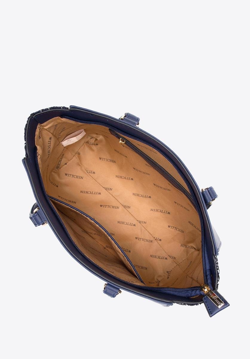 Wittchen Torebka shopperka ze wstawką z tkaniny bouclé granatowa - 97-4Y-750-N