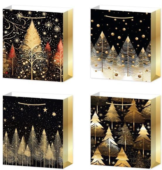 Torebka na prezent z motywem świąt Bożego Narodzenia w odcieniach czerni i złota to elegancki i stylowy sposób na zapakowanie upominków. Wyjątkowy, świąteczny design łączy klasyczne kolory z subtelnym blaskiem, dodając prezentom wyrafinowanego charakteru. Idealna na wyjątkowe okazje!