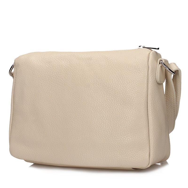 Pasek torebki o długości 110 cm, wykonany z naturalnej skóry, zapewnia komfort noszenia, dostosowując się do Twoich potrzeb. Metalowy zamek w srebrnym kolorze jest nie tylko funkcjonalny, ale również stanowi estetyczny element wykończenia.