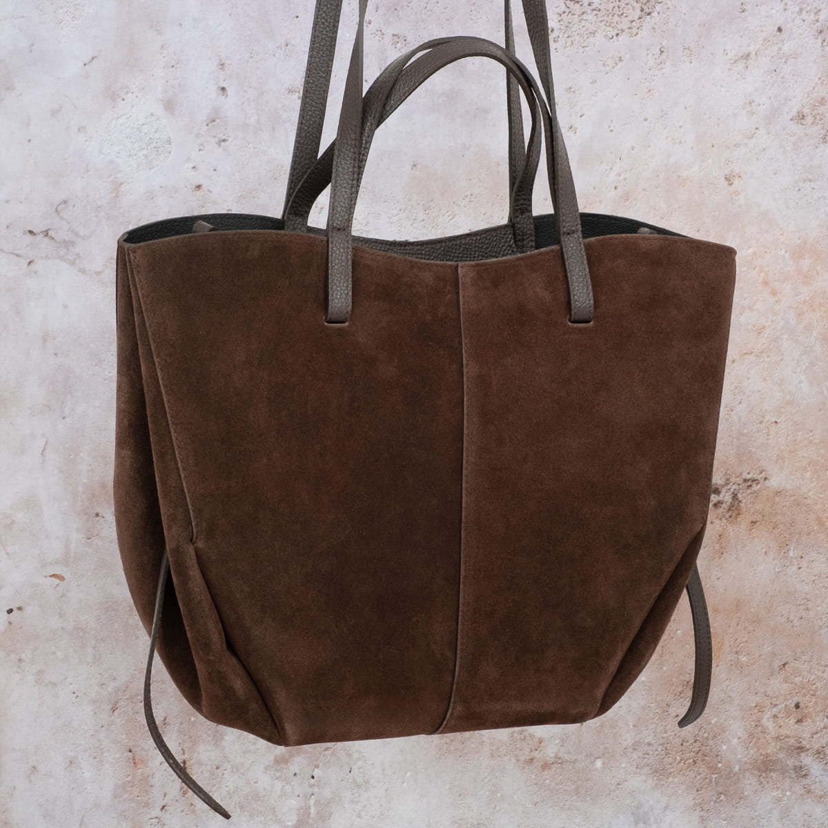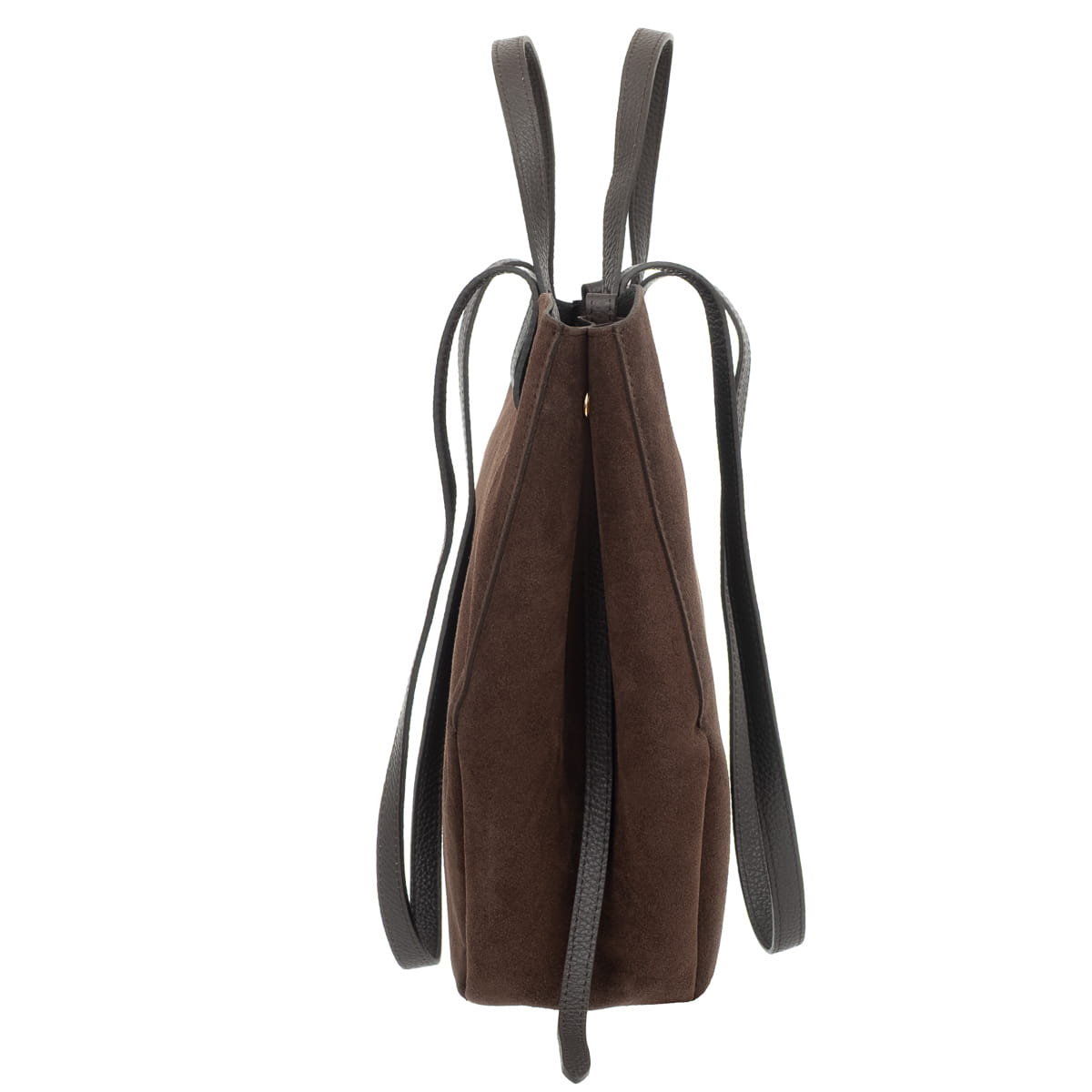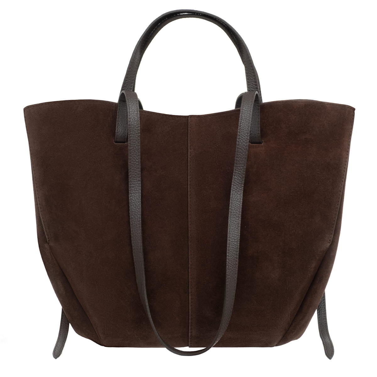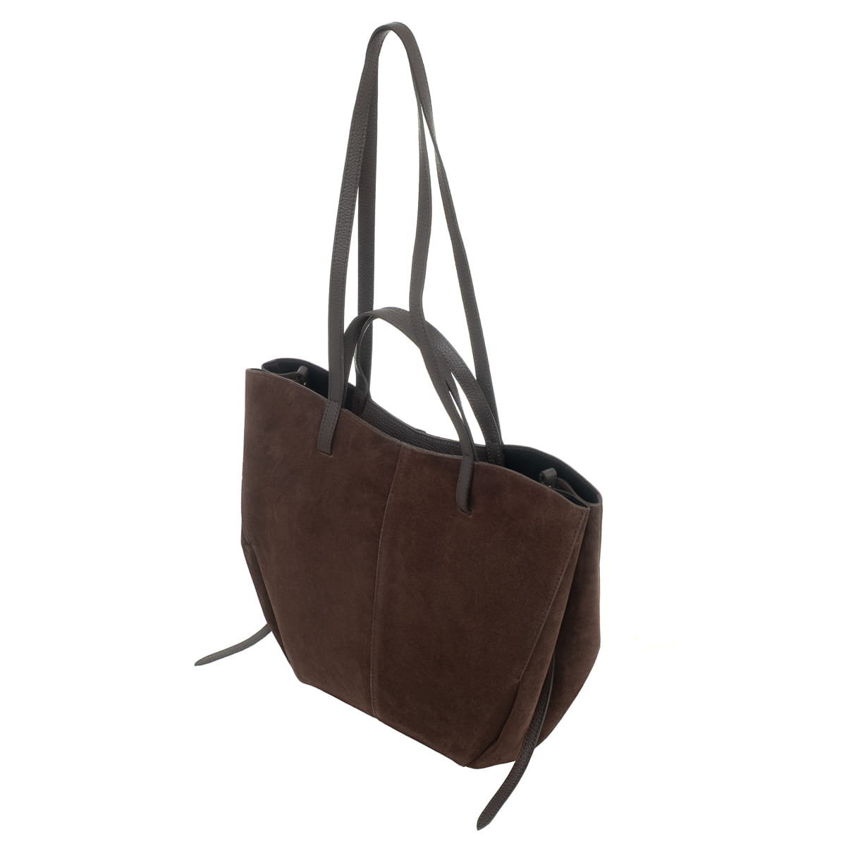Damska torebka wykonana z wysokogatunkowej włoskiej skóry zamszowej. Przystosowany do noszenia w ręku lub na ramieniu.