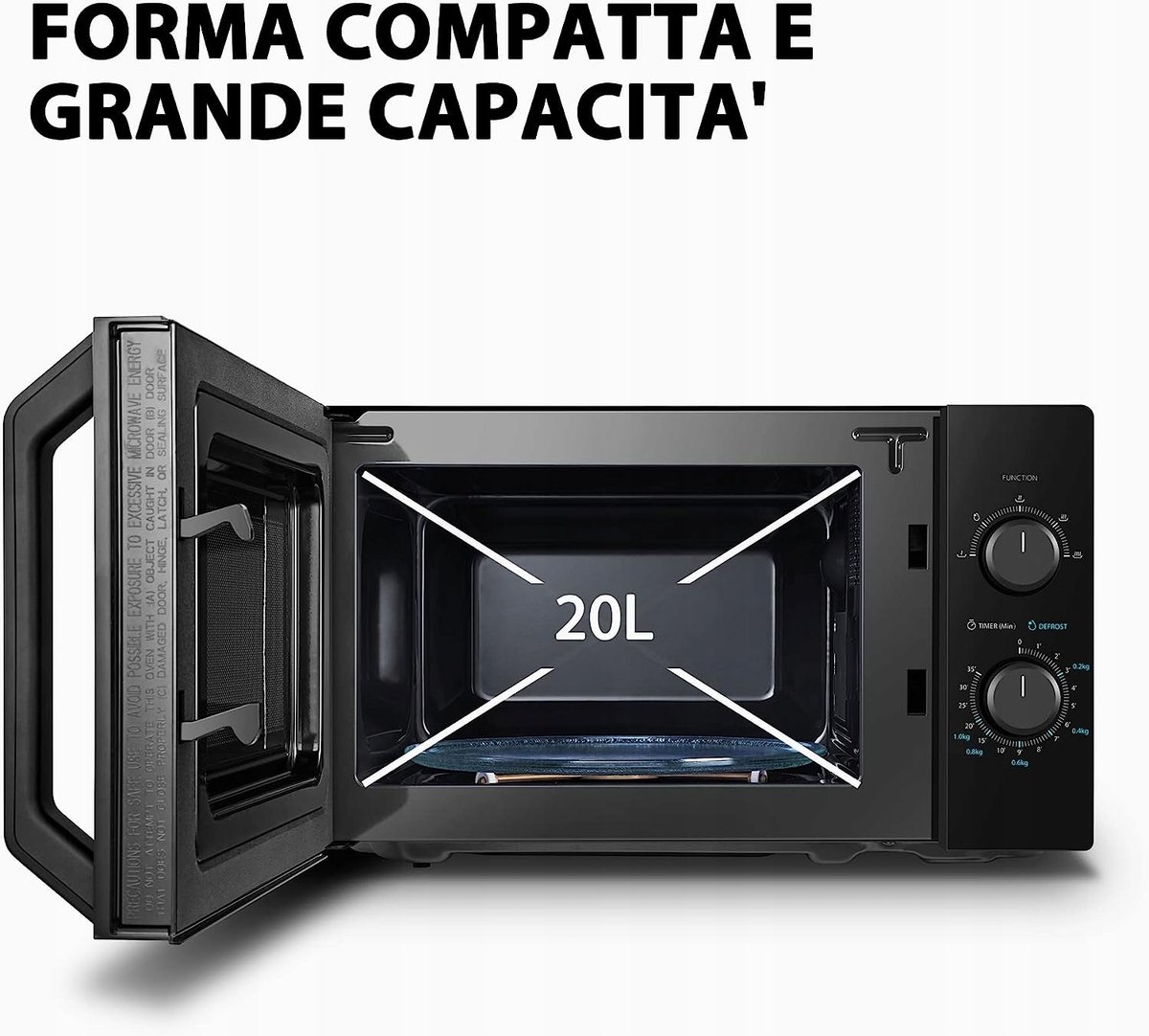 ✅ Pojemność kuchenki mikrofalowej wynosi 20 litrów, więc objętość ta jest wystarczająca, aby móc przygotować swoje ulubione danie. Urządzenie jest bardzo proste w obsłudze.
