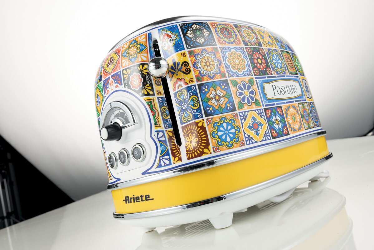 Pyszne śniadania w stylu Positano Wprowadź do swojej kuchni ciepło i wyjątkowy klimat włoskiego wybrzeża Amalfi z tosterem Ariete z linii Positano. Urządzenie wykończone eleganckim mozaikowym wzorym