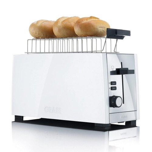 Tostery to znane i popularne urządzenia, które w prosty sposób pomagają przyrządzać ciepłe i chrupiące posiłki lub przekąski. Do grzanek można dobierać wiele dodatków, a opiekanie suchego chleba pozwoli zapobiec marnowaniu pieczywa. GRAEF TO 101 o mocy 1380 W posiada 6-stopniowa regulację - pomoże ona przygotować dobrze wypieczone tosty.