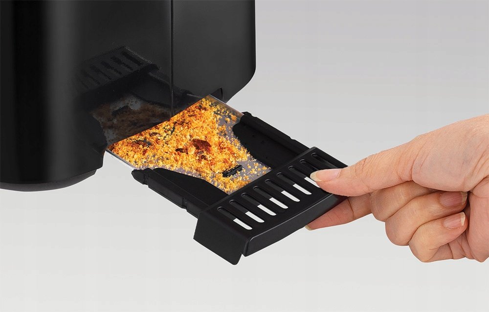 Wyjmowana tacka na okruchy pozwala na łatwe utrzymanie tostera w czystości, a schowek na przewód ułatwia przechowywanie urządzenia, co pomaga w utrzymaniu porządku na kuchennym blacie, dzięki czemu Twoja kuchnia zawsze wygląda estetycznie.