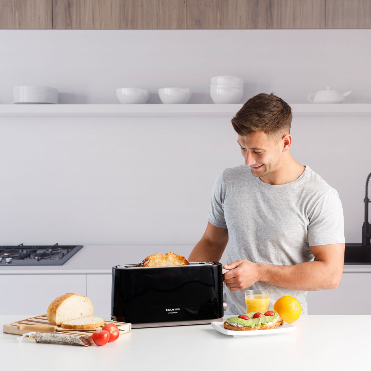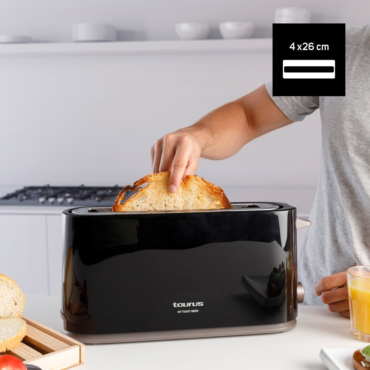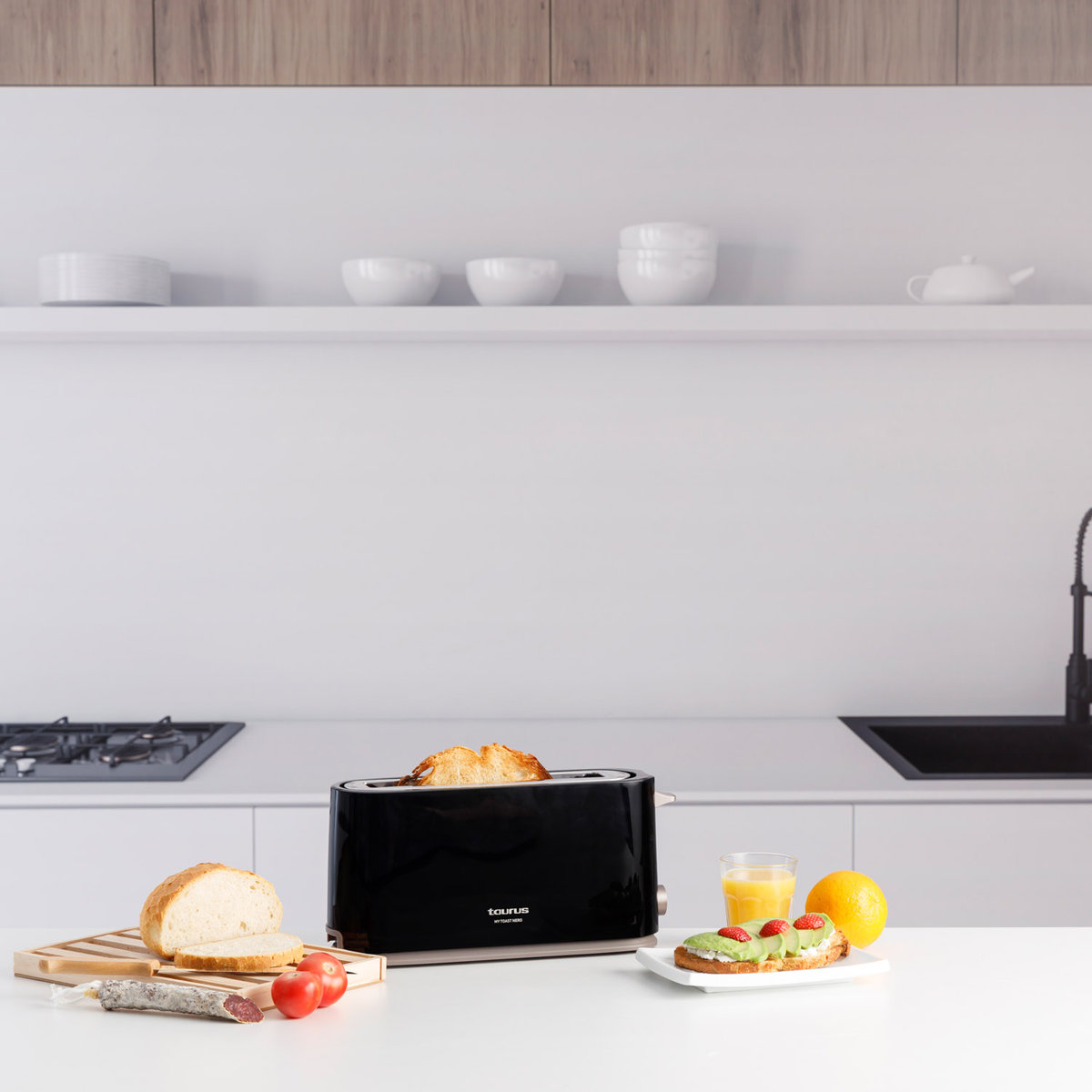 Toster MyToast Nero marki Taurus to urządzenie, które odmieni Twoje poranki i nie tylko… Dzięki dużej mocy 1000 W i optymalnym wymiarom szczeliny możesz w nim szybko opiekać zarówno małe, jak i duże kromki chleba.