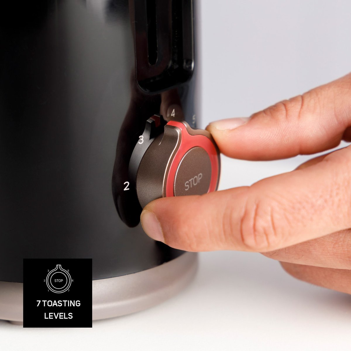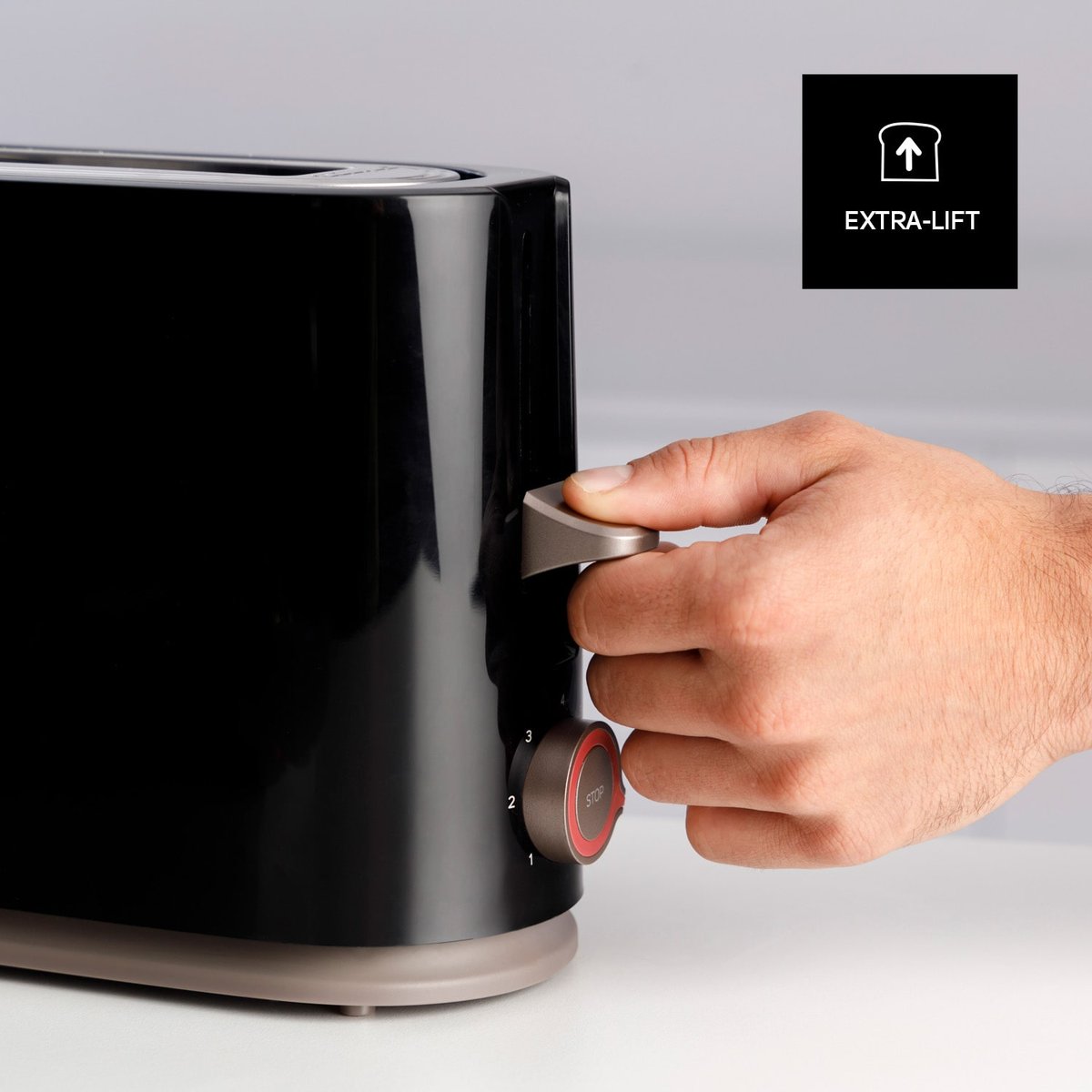 Elegancki, czarny korpus z tworzywa sztucznego sprawia, że toster MyToast Nero doskonale wpisuje się w wystrój każdej kuchni.