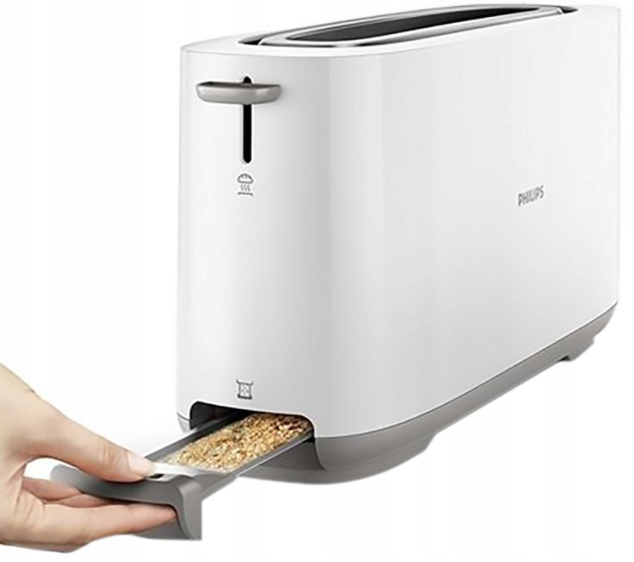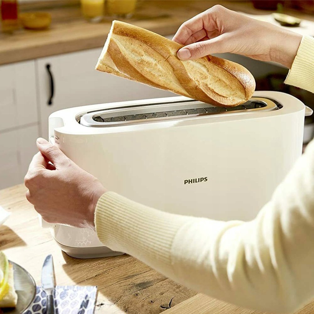 TOSTER PHILIPS HD2590 1030W⭐ Chrupiące tosty każdego dnia!Toster z długimi szczelinami i ośmioma ustawieniami zapewniającymi równe, złote rezultaty, bez względu na to, co tostujesz i jak chcesz.