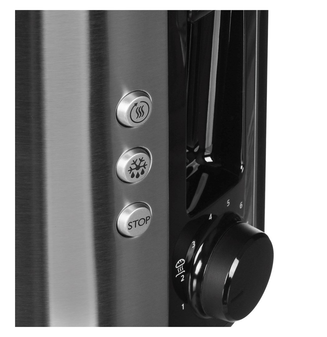 Toster posiada regulację opiekania i 8 poziomów do wyboru. Dzięki temu jest doskonałym narzędziem do szybkiego przygotowania pysznych tostów. Zastosowanie funkcji automatycznego wyłączania sprawia, że chleb jest idealnie upieczony. Funkcja rozmrażania pozwoli Ci na przygotowanie przekąski z zamrożonego pieczywa, a opcja podnoszenia ułatwi wyjmowanie gotowych tostów bez ryzyka poparzenia.
