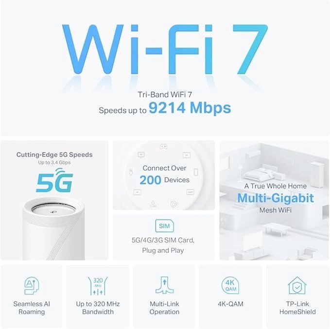 - Funkcja specjalna: Wi-Fi 7, 5G LTE, Tri-band