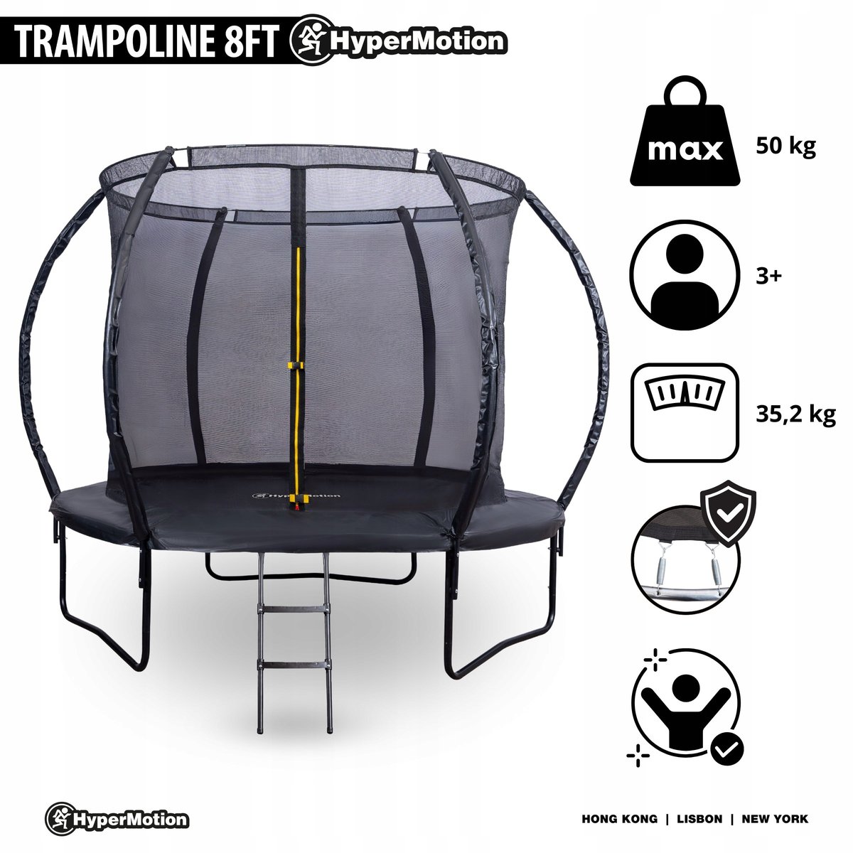 Trampolina ogrodowa dla dzieci HyperMotion - 244 cm 8FT - z drabinką i siatką wewnętrzną - do domu i ogroduMarka: HyperMotionModel: TRAMPOLINE 8FT Nie ma lepszego sposobu na ...