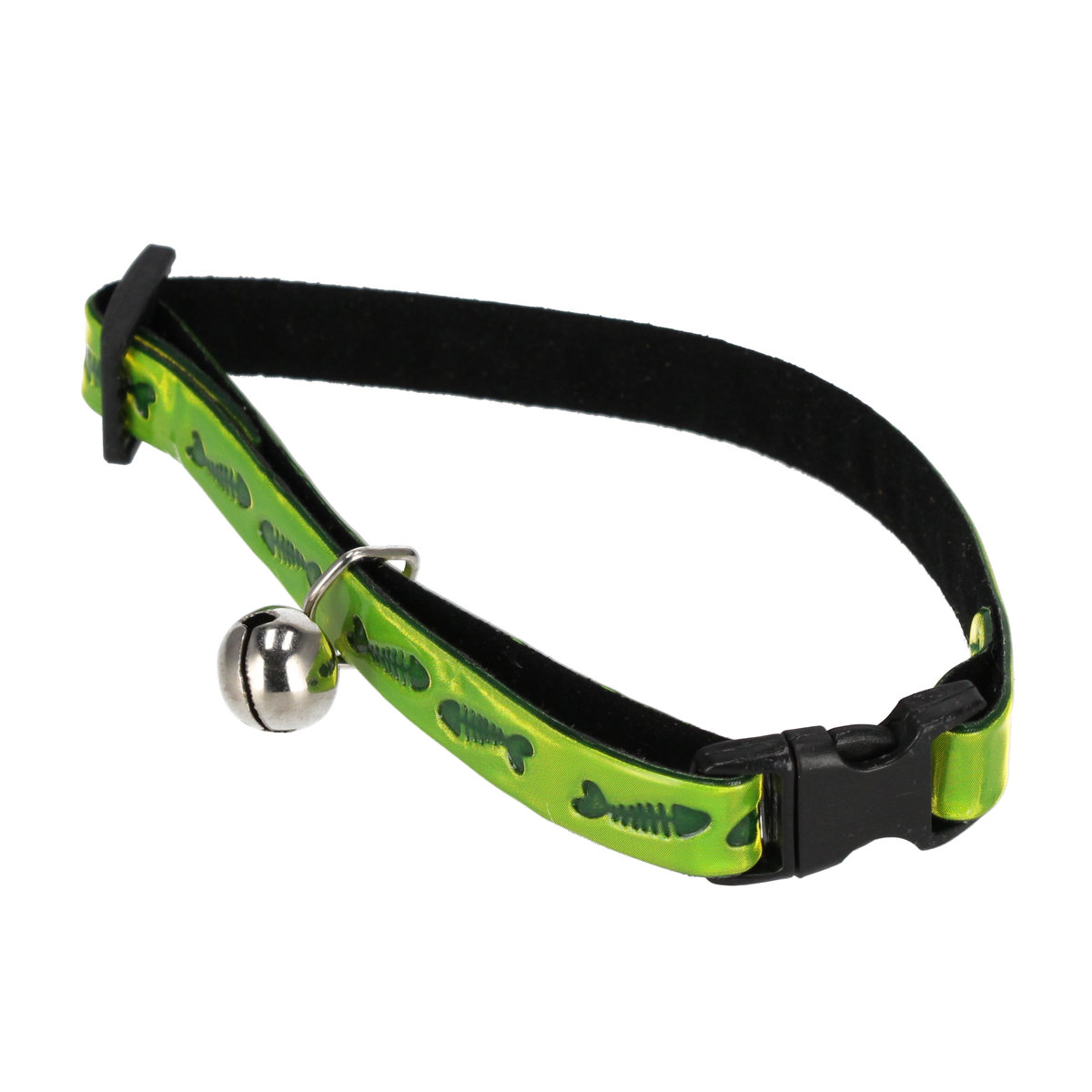 Zalety produktu: Obroża z dzwoneczkiem dla kota może być praktycznym dodatkiem, ułatwiającym lokalizację czworonoga oraz ostrzegającym potencjalne ofiary podczas polowań. Obroża posiada regulację szerokości dzięki czemu bez problemu można ją dopasować do obwodu szyi kota. Dzwoneczek można odczepić. Obroża wykonana z delikatnych dla pupila materiałów. Obroża w odblaskowym zielonym kolorze z nadrukowaną grafiką ryby. Wymiary/waga: wymiary produktu (dł. x szer. )[cm]: od 19,5 do 31x1, waga produktu [kg]: 0,02 kg. Wymiary produktu z opakowaniem( szer. x wys.) (cm) 6x20cm.Obroża pakowana na blistrze z euro zawieszką. Rekomendowana dla wszystkich ras kotów.