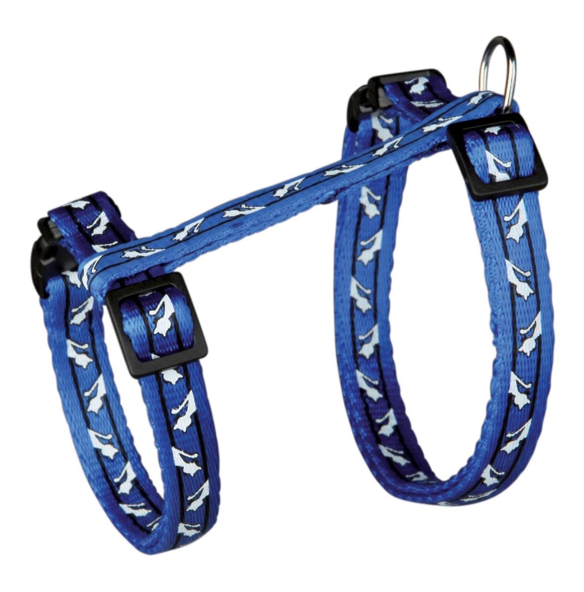 Szelki + smycz dla kota wykonane z mocnej tasiemki (z wzorkiem). Szelki zapinane na zatrzaski. Szerokość tasmy: 10 mmSzelki regulowane na obwodzie brzucha: 27-46cm Kolor szelek może się różnić od